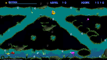 Dive into the underwater caves and traverse them. Collect crystals in the process. The submarine starts automatically. You can only move forwards, upwards and downwards. Your oxygen supply is limited. If you brush against the cave wall or touch thorns, you will lose oxygen. When the oxygen supply is exhausted, your submarine implodes and the game is lost. Can you make it through all 10 levels without destroying your submarine?